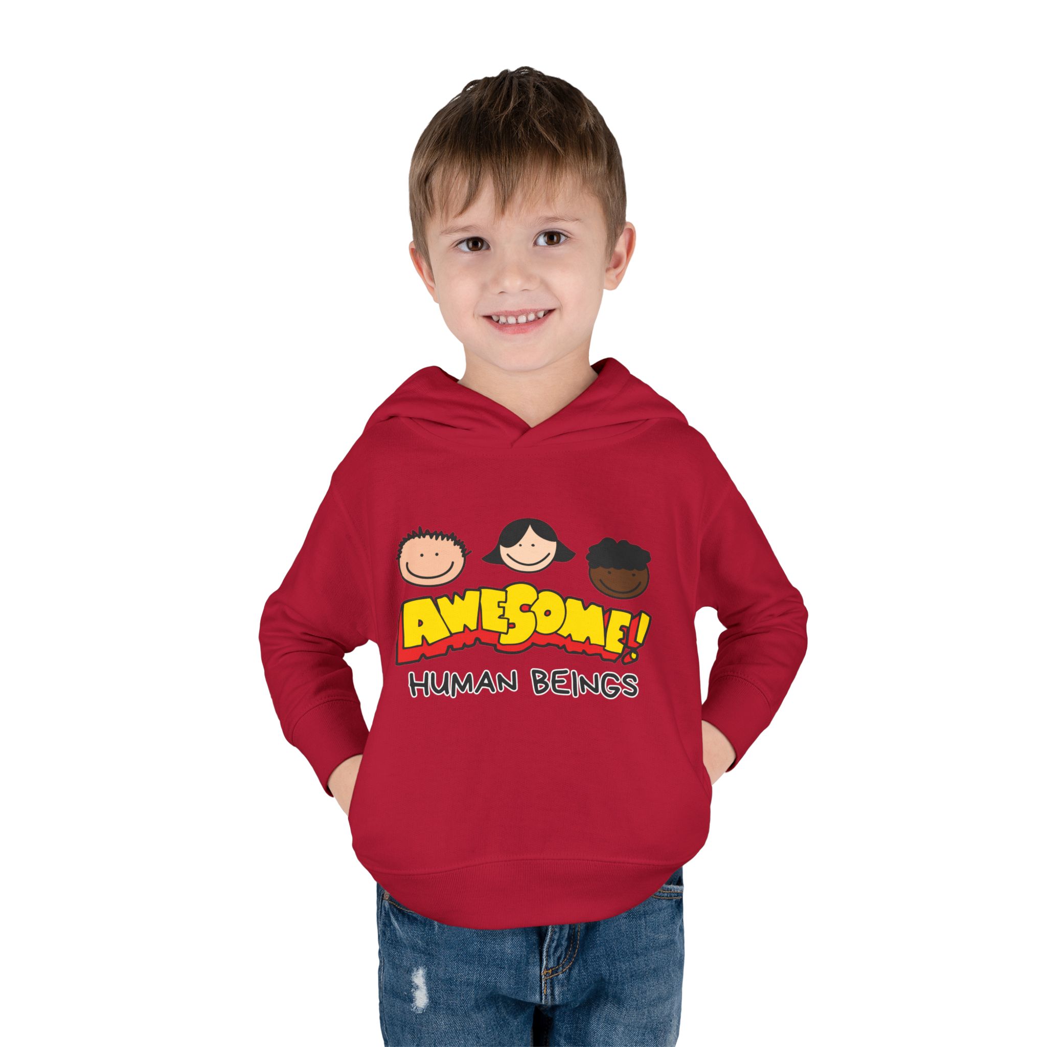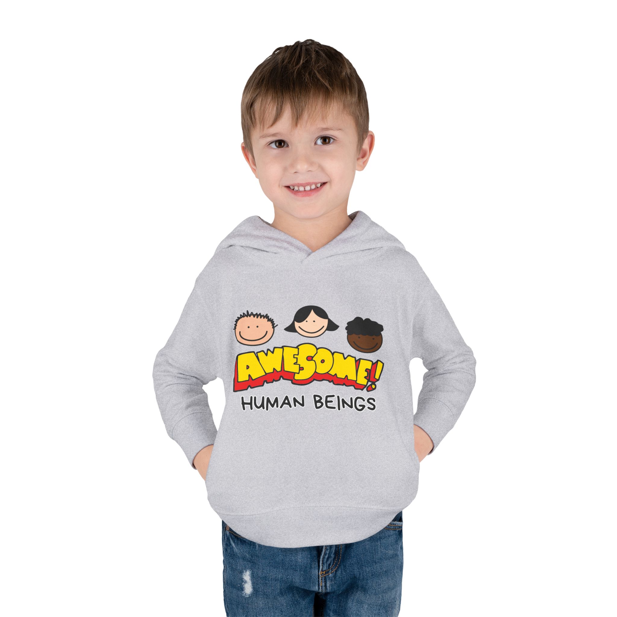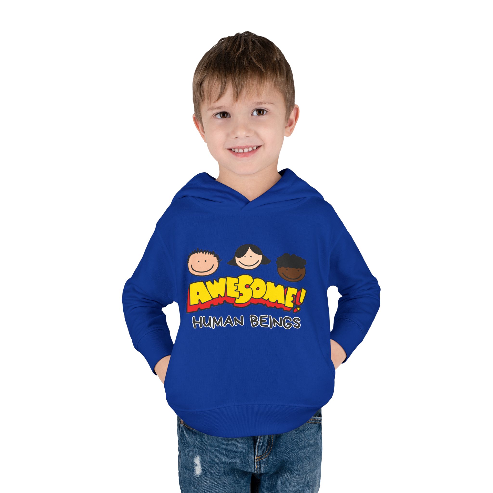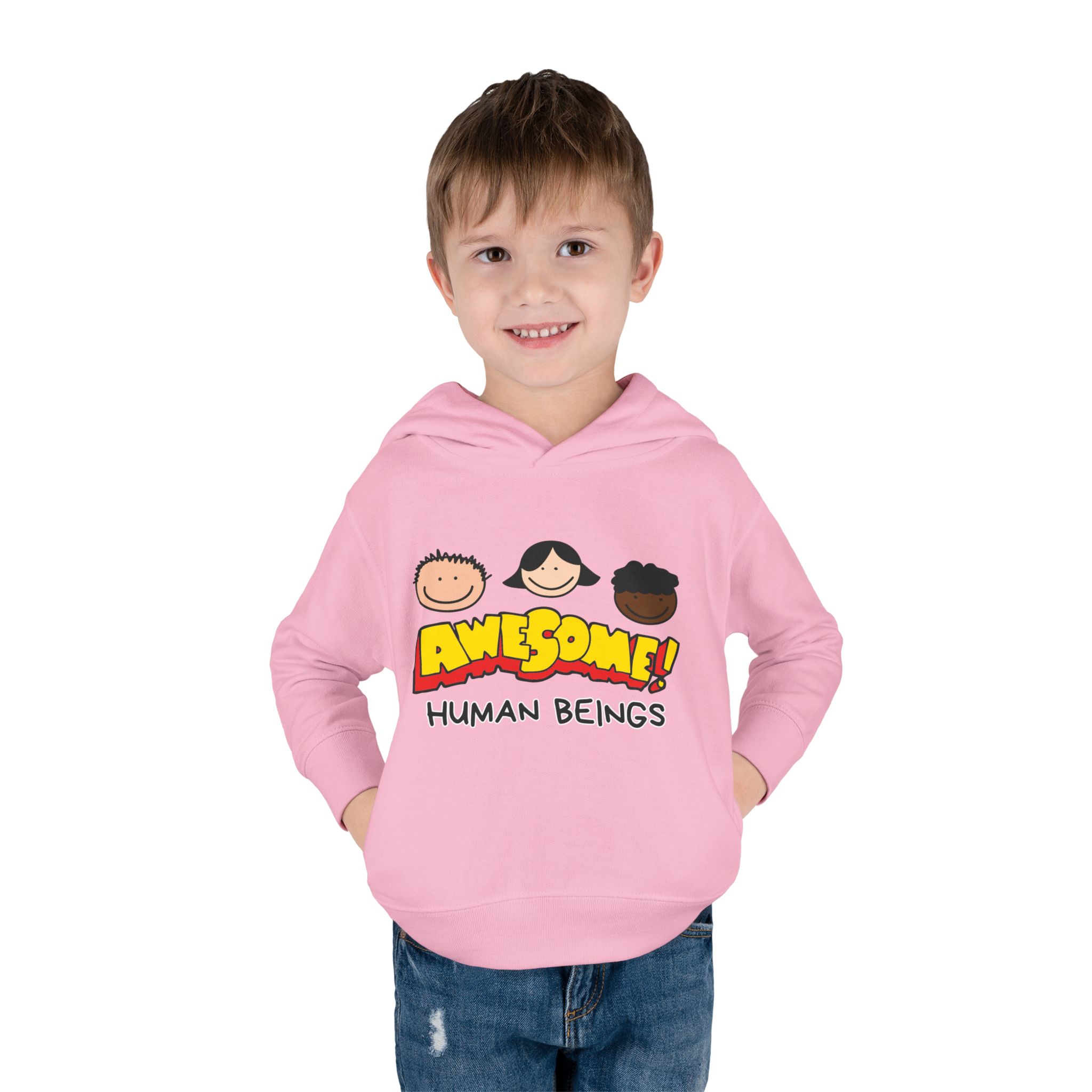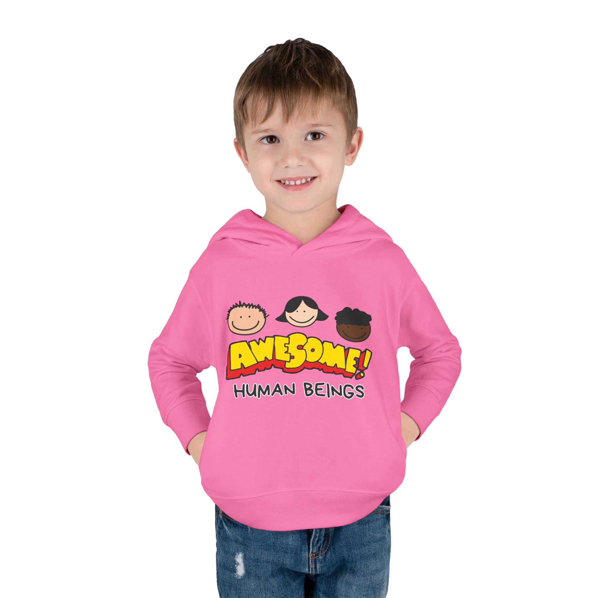 This cozy toddler pullover fleece hoodie is perfect for keeping your little one warm and stylish. Made from a soft blend of cotton and polyester, it offers a luxurious feel against the skin. The cheerful design featuring colorful graphics adds a fun and playful vibe, making it ideal for playdates and casual outings.nnDesigned with active toddlers in mind, this hoodie features convenient side-seam pockets for little treasures and ribbed-knit cuffs that ensure a snug fit. It’s tailored for durability with coverstitched seams that retain its shape through energetic adventures. Perfect for chilly days in the playground or cozy evenings at home, this hoodie is a great gift for birthdays, holidays, or just because. Parents looking for versatile, cute, and comfortable outerwear for their toddlers will find this hoodie a delightful choice!