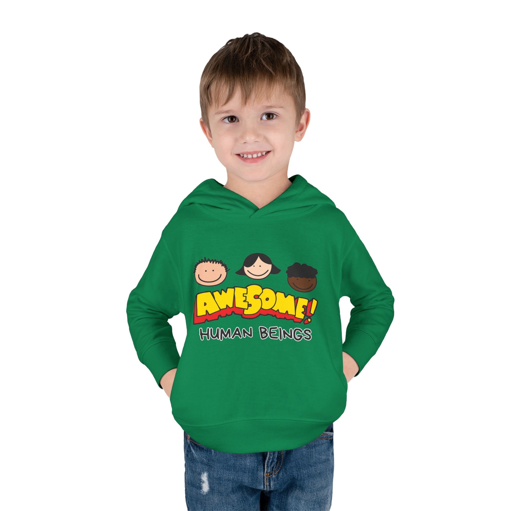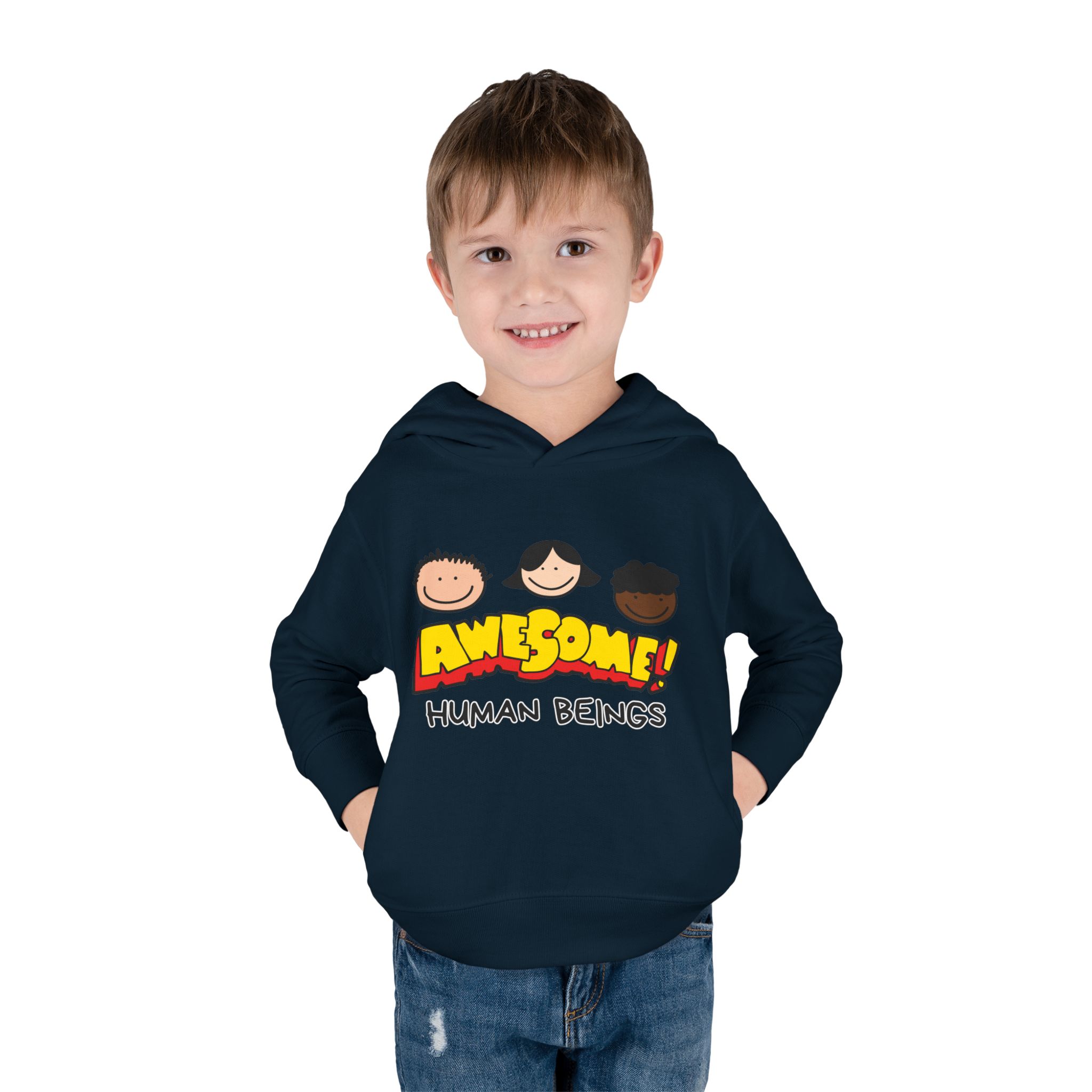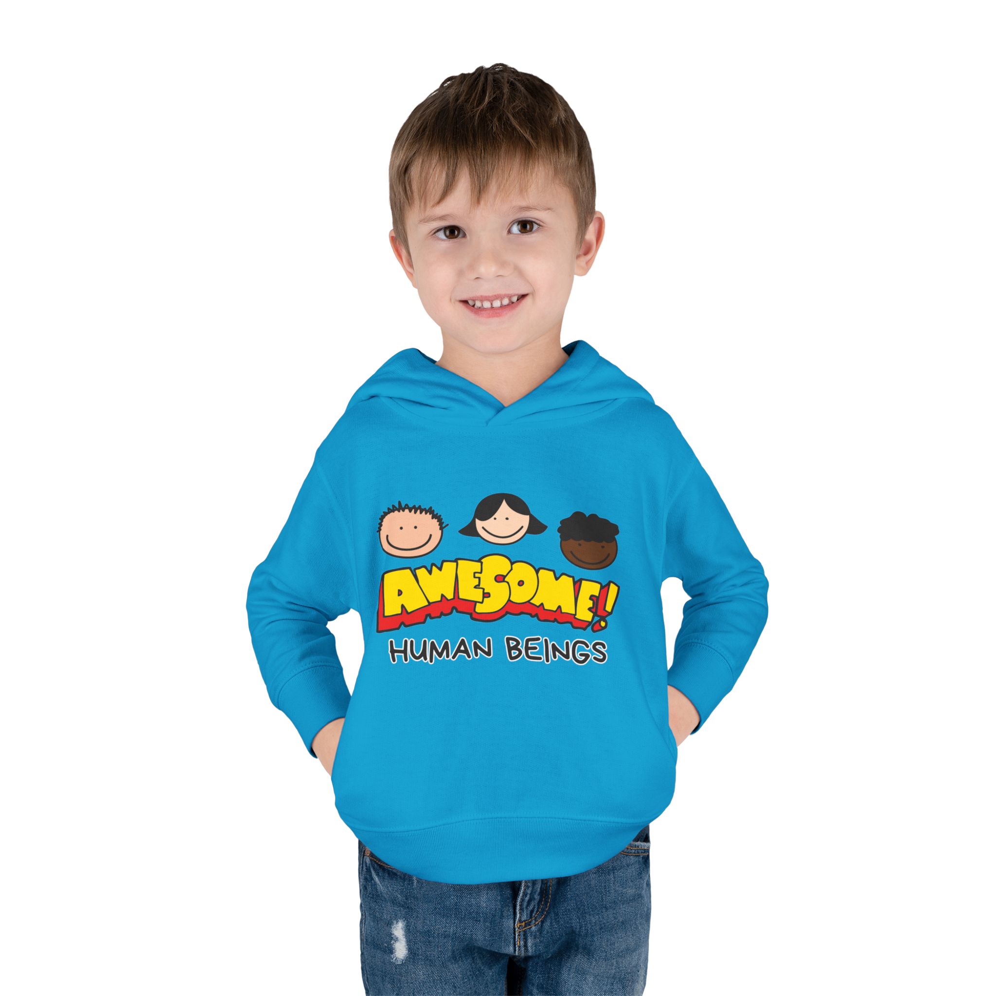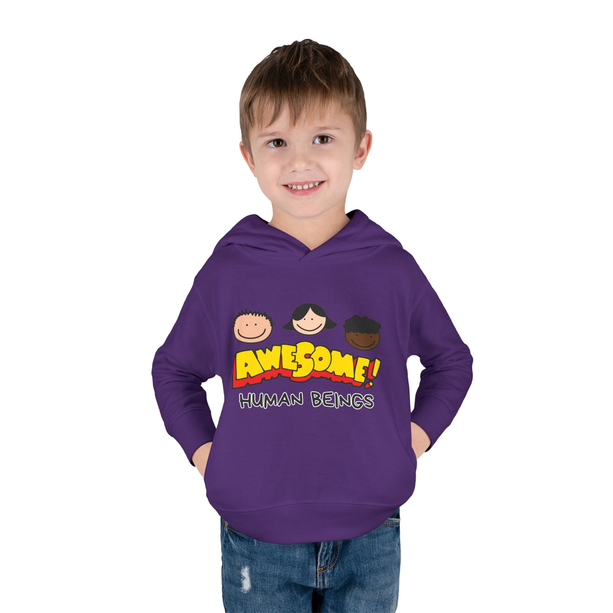 This cozy toddler pullover fleece hoodie is perfect for keeping your little one warm and stylish. Made from a soft blend of cotton and polyester, it offers a luxurious feel against the skin. The cheerful design featuring colorful graphics adds a fun and playful vibe, making it ideal for playdates and casual outings.nnDesigned with active toddlers in mind, this hoodie features convenient side-seam pockets for little treasures and ribbed-knit cuffs that ensure a snug fit. It’s tailored for durability with coverstitched seams that retain its shape through energetic adventures. Perfect for chilly days in the playground or cozy evenings at home, this hoodie is a great gift for birthdays, holidays, or just because. Parents looking for versatile, cute, and comfortable outerwear for their toddlers will find this hoodie a delightful choice!
