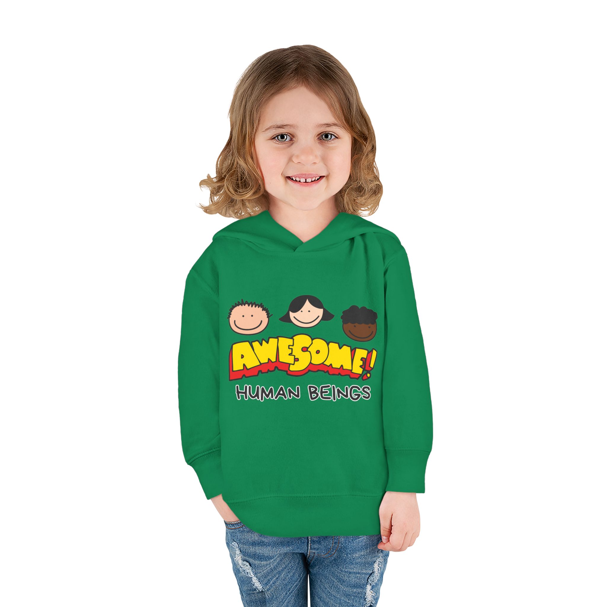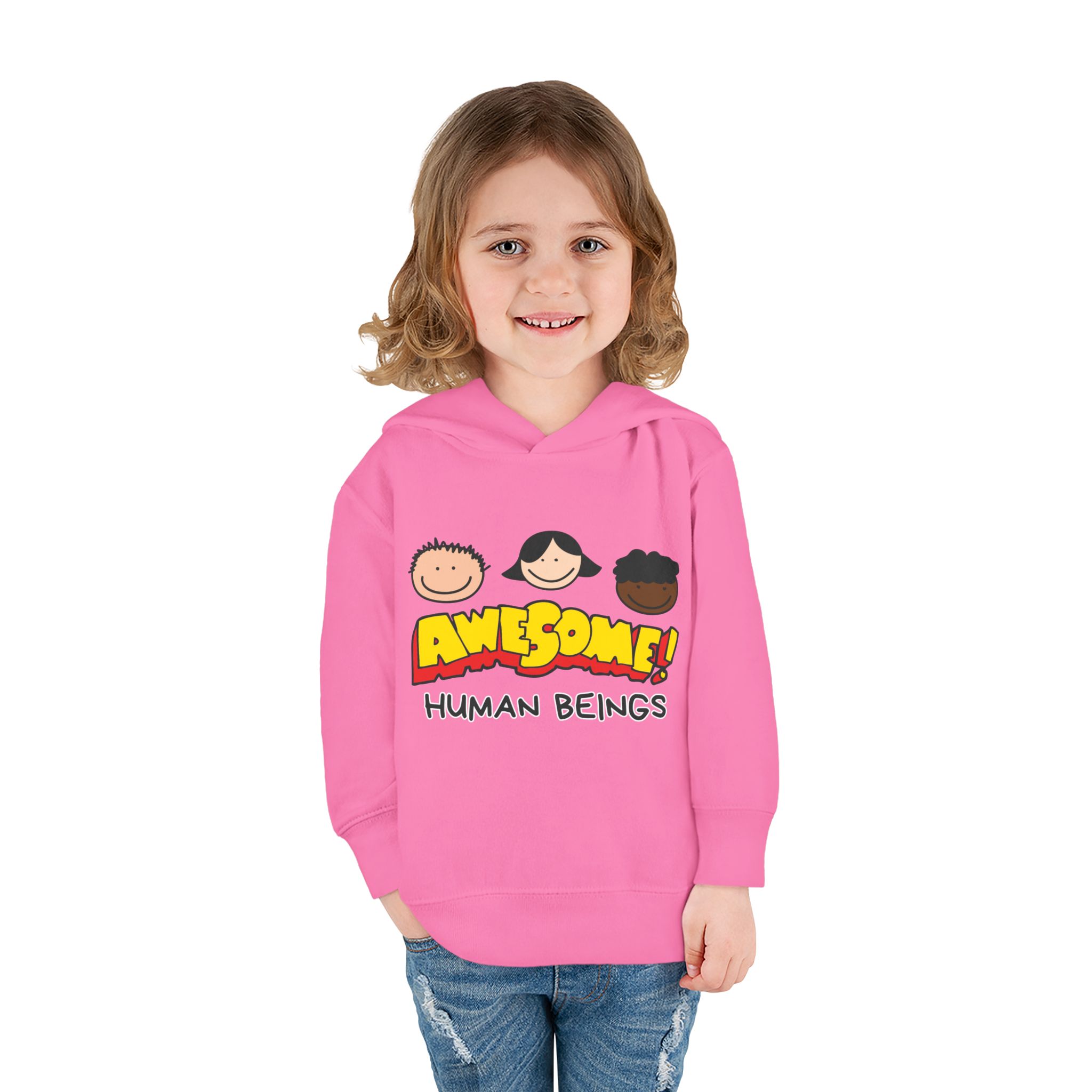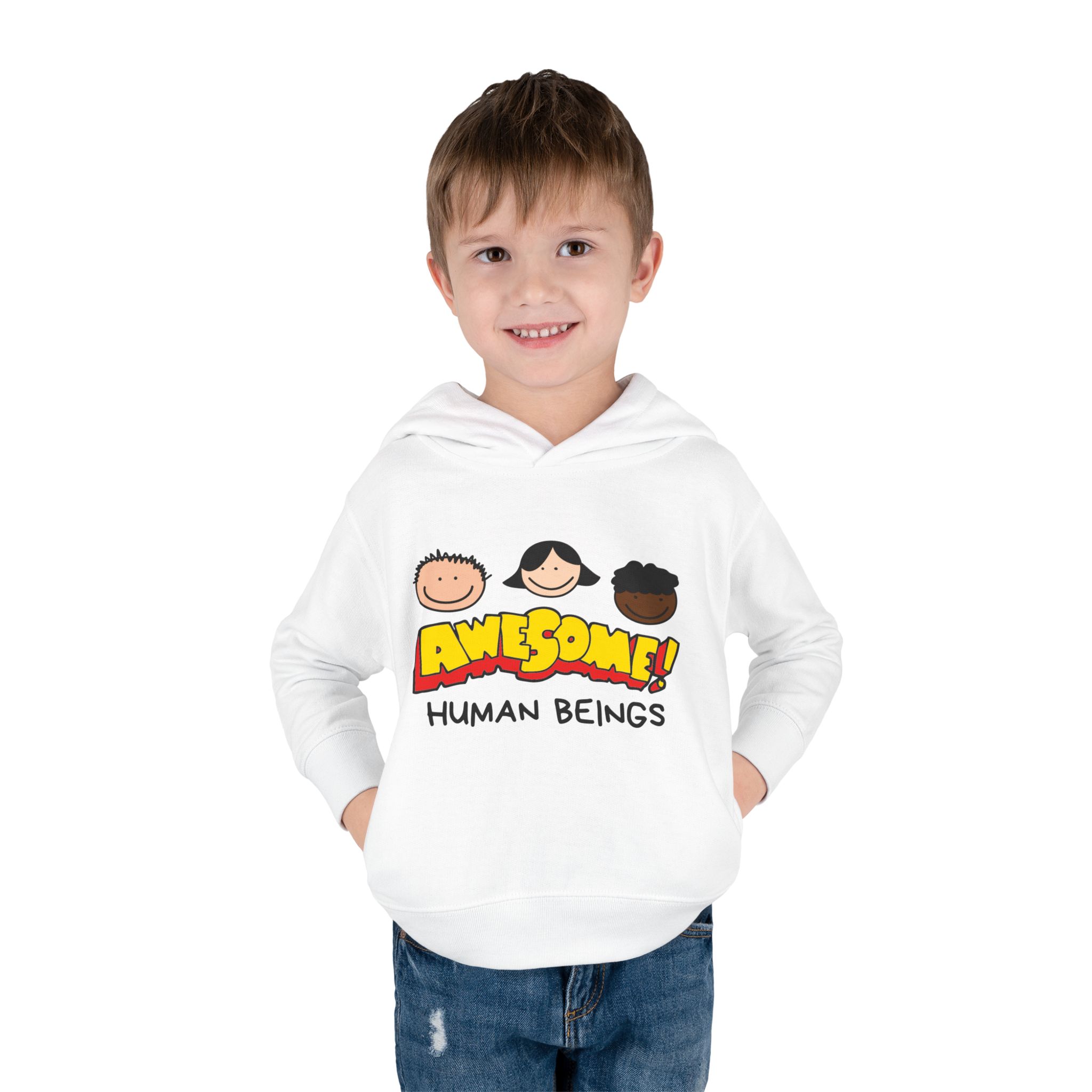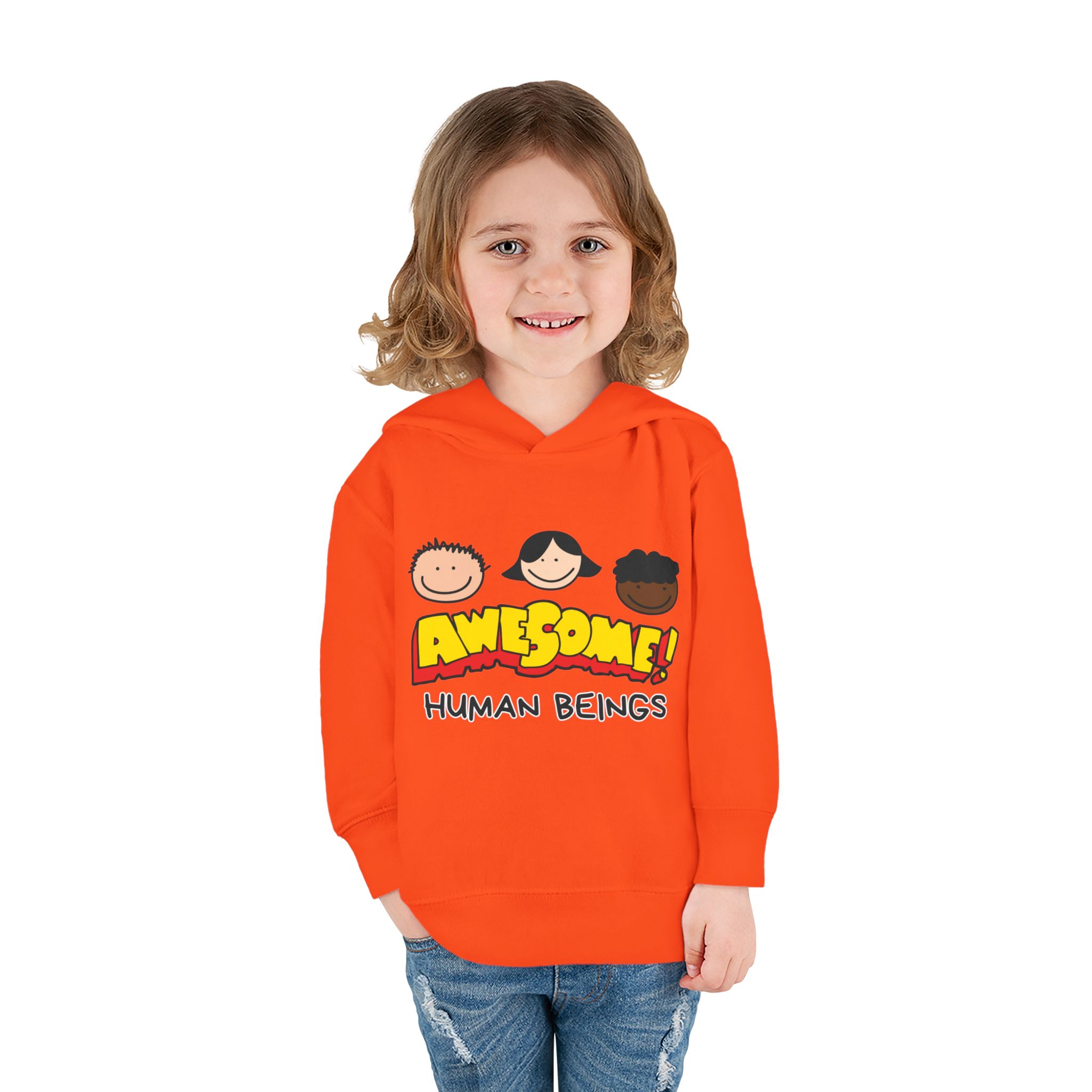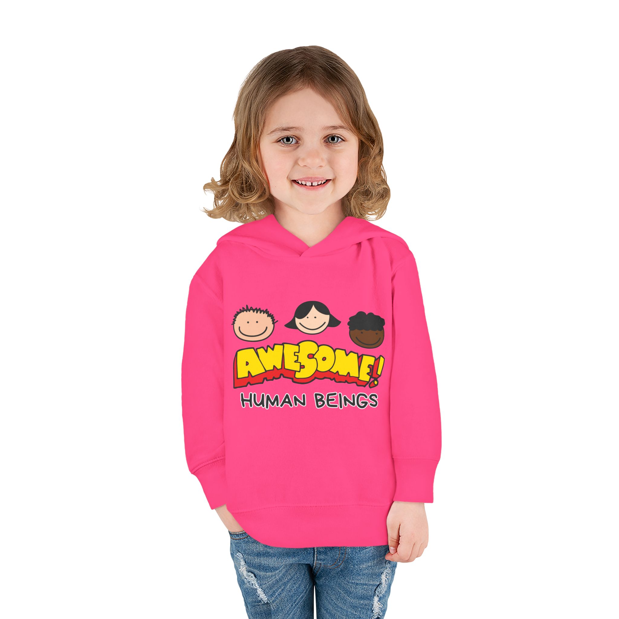 This cozy toddler pullover fleece hoodie is perfect for keeping your little one warm and stylish. Made from a soft blend of cotton and polyester, it offers a luxurious feel against the skin. The cheerful design featuring colorful graphics adds a fun and playful vibe, making it ideal for playdates and casual outings.nnDesigned with active toddlers in mind, this hoodie features convenient side-seam pockets for little treasures and ribbed-knit cuffs that ensure a snug fit. It’s tailored for durability with coverstitched seams that retain its shape through energetic adventures. Perfect for chilly days in the playground or cozy evenings at home, this hoodie is a great gift for birthdays, holidays, or just because. Parents looking for versatile, cute, and comfortable outerwear for their toddlers will find this hoodie a delightful choice!