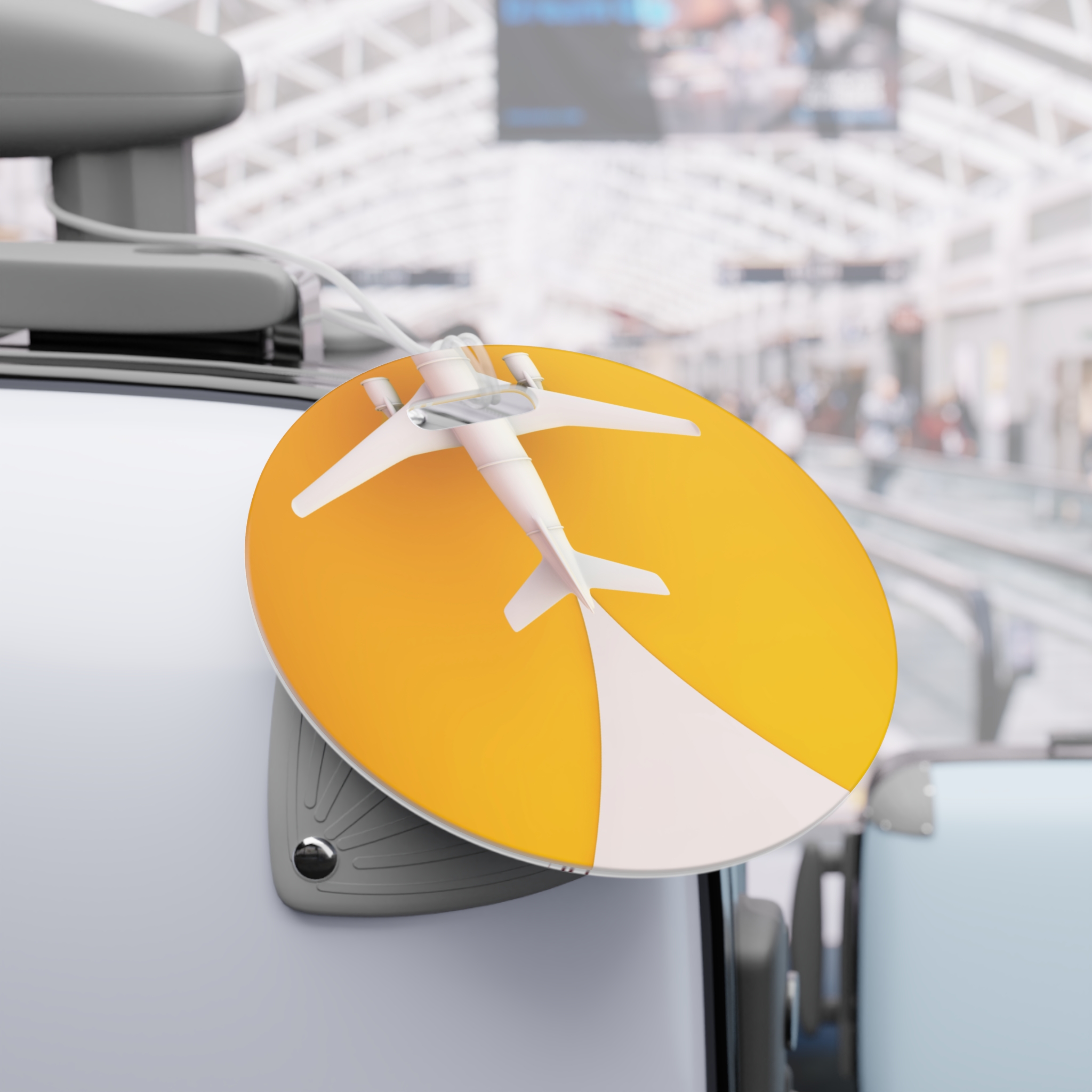 Bright, durable luggage tags that add personality to every journey. Printed double-sided on glossy, lightweight plastic, these tags catch the eye with vivid color and a clean travel-inspired graphic. The clear flexible acrylic tie loops securely through handles and straps. One tag per order, available in round or rectangle shapes, assembled in the USA from globally sourced parts. Use the back to write name, address, and phone so your bag stands out and stays identifiable on the carousel.