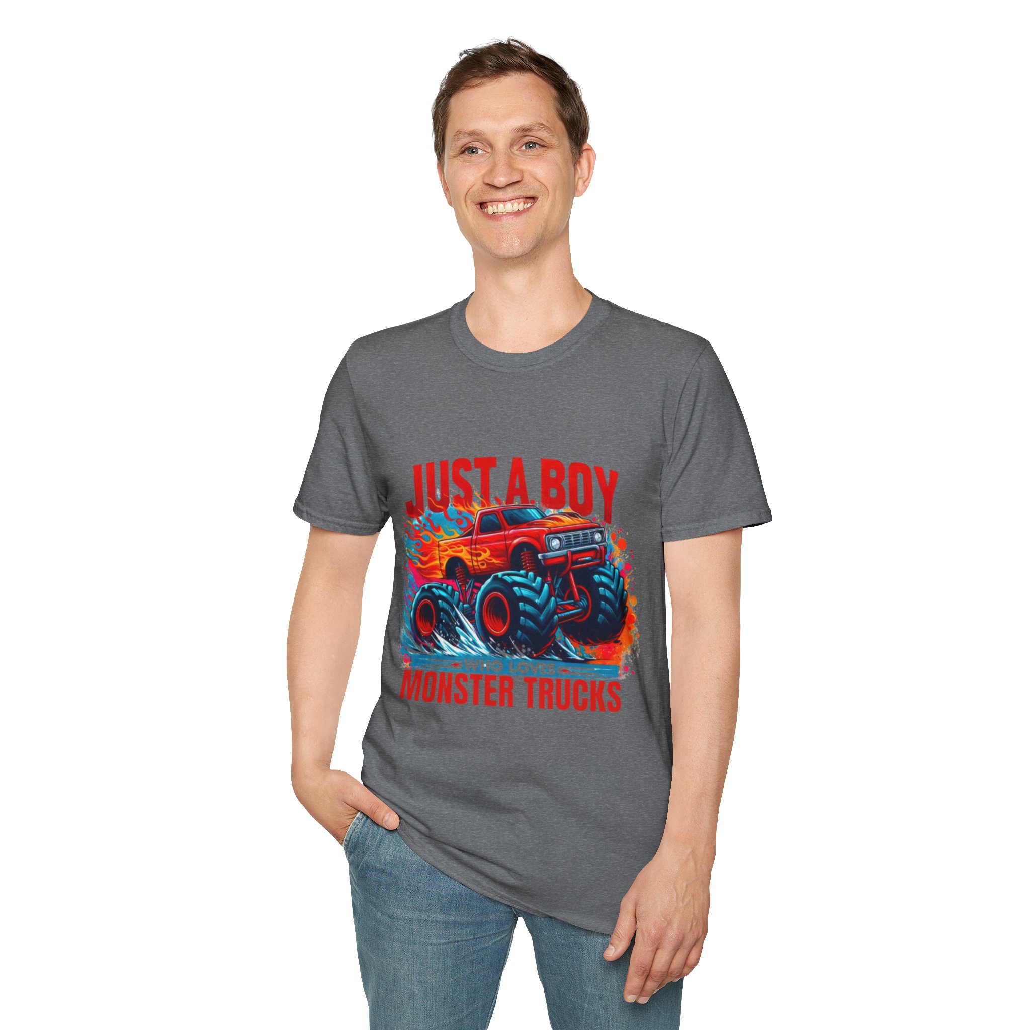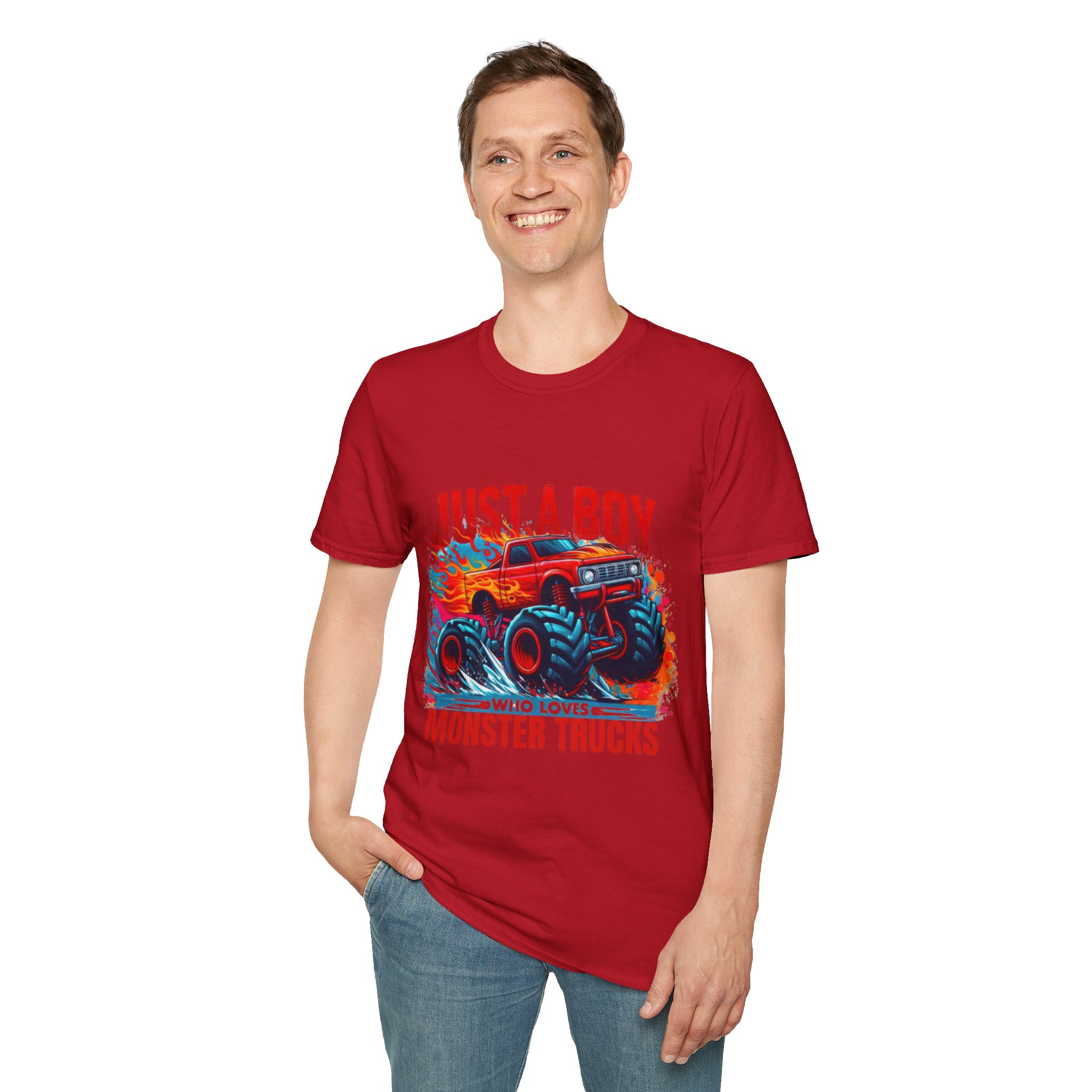 This lightweight cotton tee brings back the thrill of crushed dirt, burning rubber, and bright flames. A slim crew neck and clean classic fit let the fiery logo on the chest and the oversized monster truck blaze across the back take center stage. Wear it for everyday life. The soft ring-spun cotton feels broken-in and comfortable, and the tear-away label keeps the neck clean so you stay focused on what matters: the roar, the speed, the stunt. Subtle natural flecking is visible on unprocessed shades, adding character to the white canvas of this design.