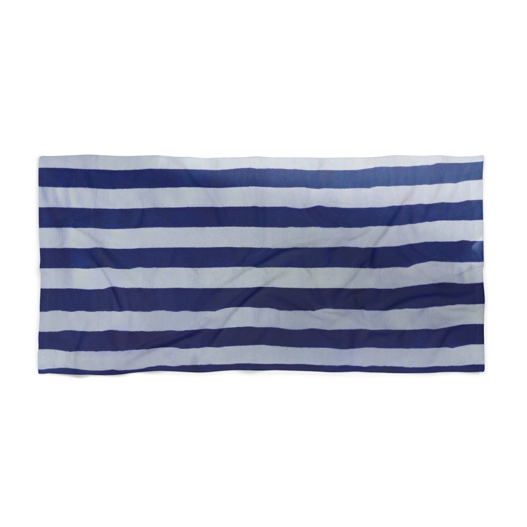 Salt-warmed breeze, sand between your toes, and the clean confidence of bold navy stripes. This beach towel brings a classic seaside look with modern performance: a crisp polyester print face for vibrant color and quick drying, backed by a soft white cotton loop that soaks up water and feels gentle against skin. Light enough to fold into a tote, large enough to stretch out on the sand. Carry it to shoreline mornings, boat days, or slow afternoons beside the surf — it settles into the rhythm of seaside life and cleans up easily when the day is done.